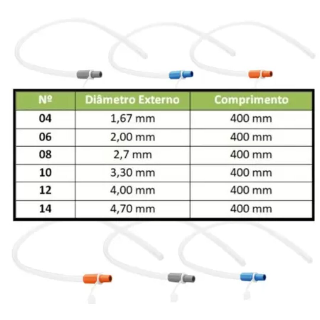 . Todas as sondas descartáveis são compostas de tubo de PVC atóxico flexível com modelo de furação específica (2 furos) e conector com tampa.